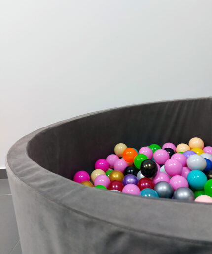 Piscina cu bile realizată din spumă poliuretanică de către Story Room  are multiple opțiuni de culoare și formă, oferă combinații